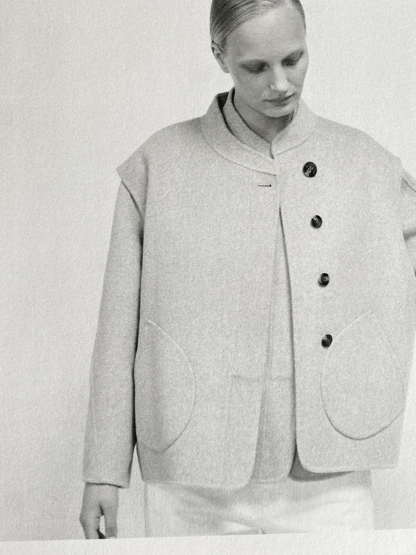 Flexible y reversible, esta prenda de doble cara se puede llevar como jersey o como abrigo, según la temporada. Dos tejidos lisos que envuelven el cuerpo con un material suave, sofisticado y cómodo, pensado para todas las estaciones.