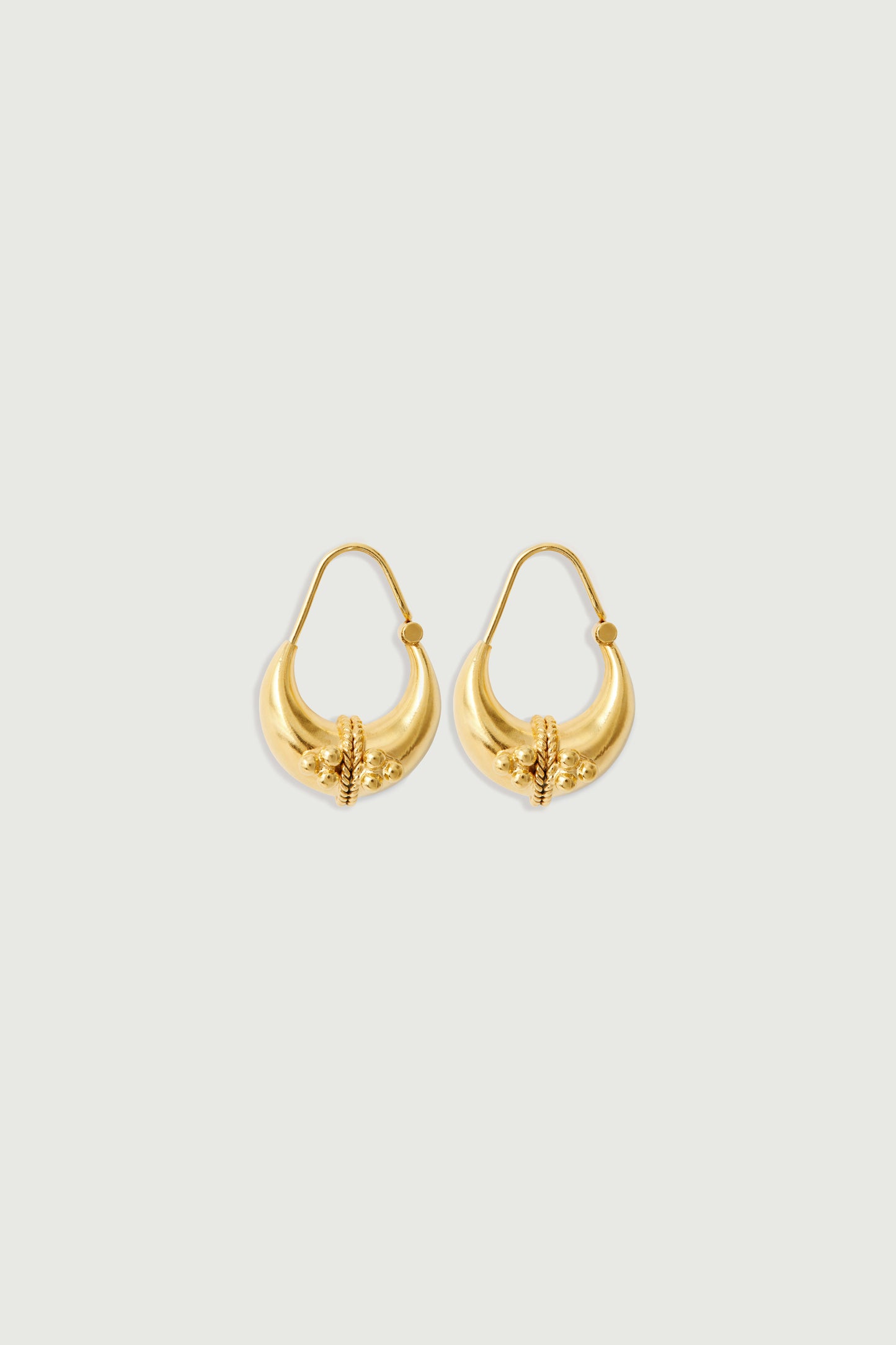 ZAGREB es un par de pendientes curvos en oro vermeil, con un grabado en el centro. Puede combinarse con el anillo ZELIE, que tiene el mismo aspecto curvo.