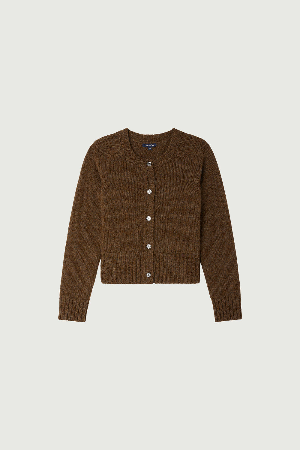 Cárdigan corto de alpaca y lana marrón jaspeado