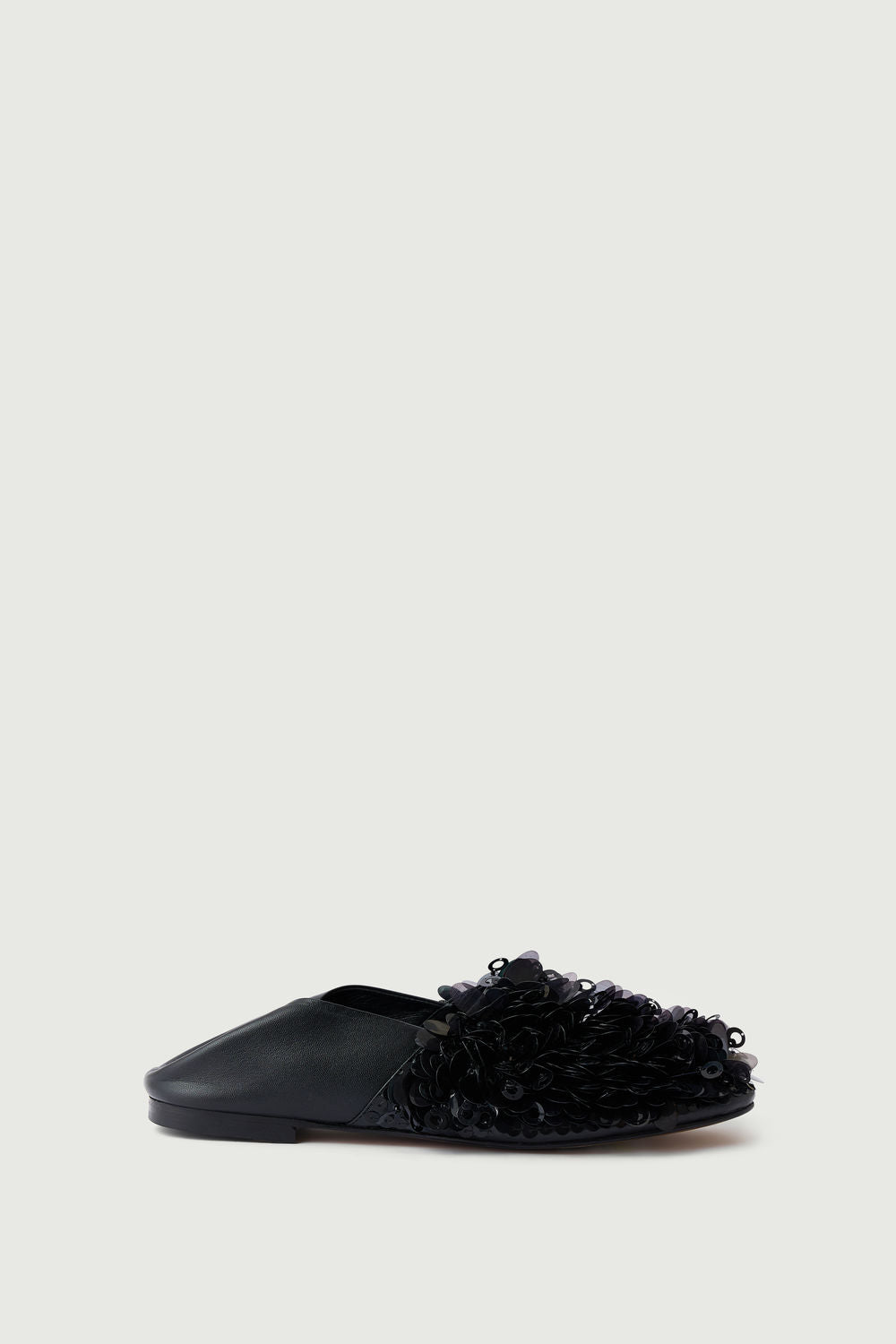mocasines rosy Mocasines de piel negra y lentejuelas bordadas