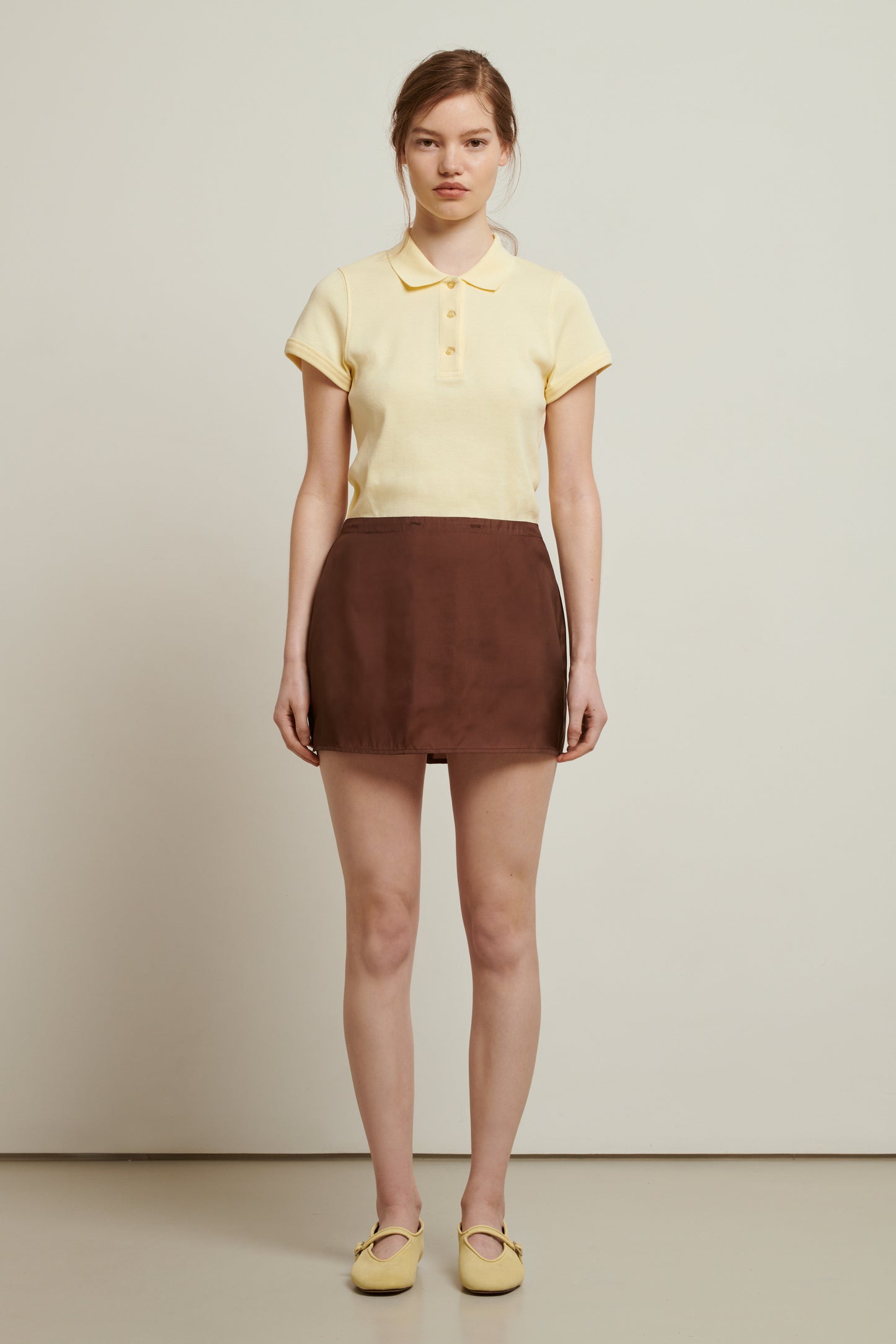 La ligereza del tejido se suaviza con una enagua abrochada con pequeños botones de nácar. La enagua puede llevarse sola.