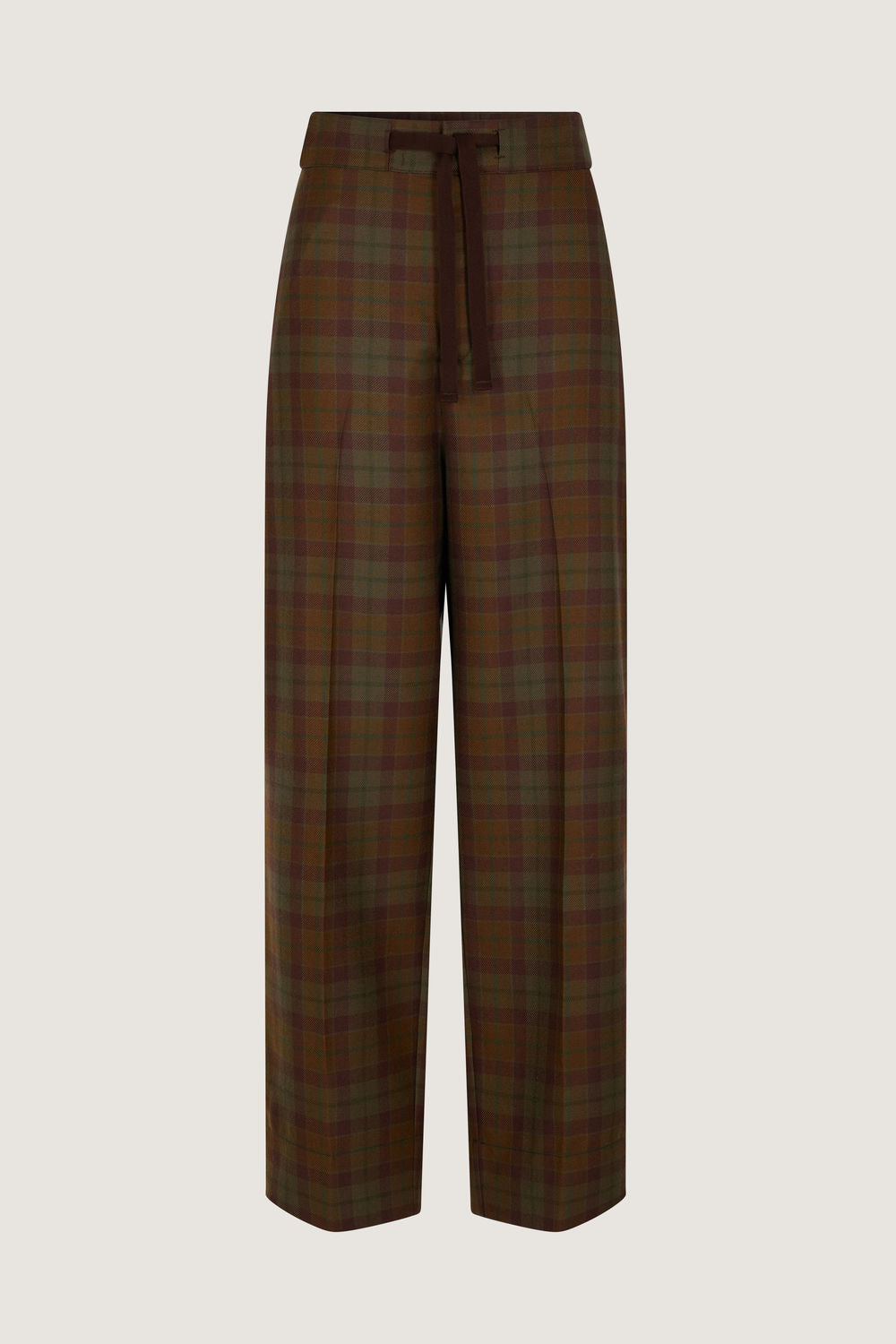 Pantalón de cintura elástica en tejido de lana caqui/marrón