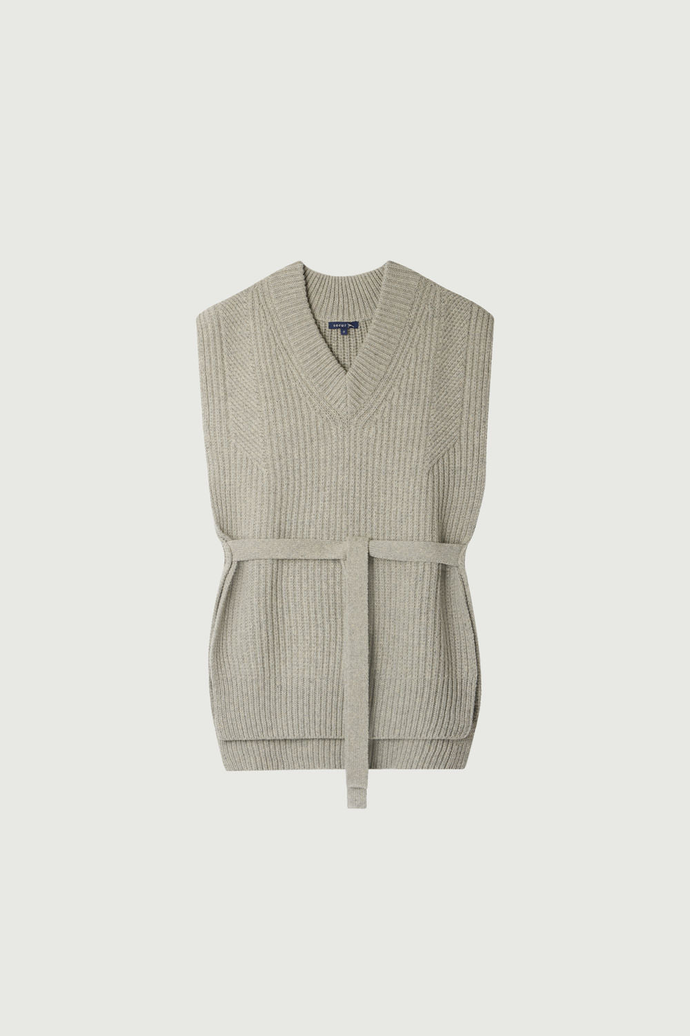 COSTA es un peto recto, tejido en un hilo de lana virgen. Efecto visual conseguido por un diseño de canalé, los lazos en los laterales se llevan ceñidos para marcar la cintura o se dejan colgando. Una prenda ideal para dar calidez a un conjunto, como un vestido de seda o una camisa holgada de algodón.