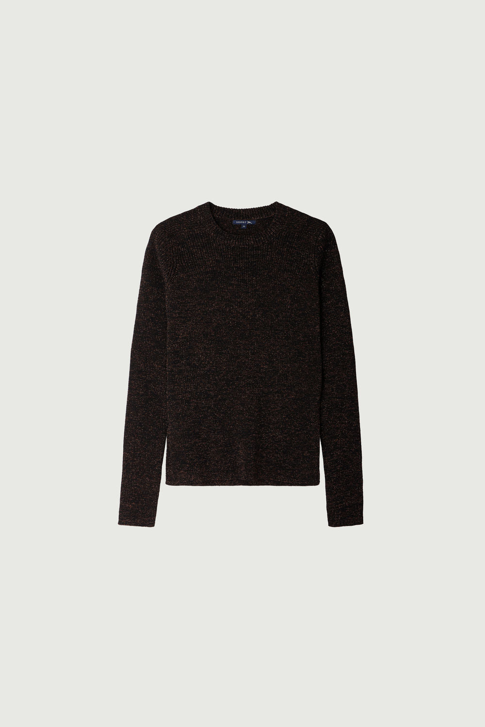 VERONA es un jersey acanalado tejido con hilo de lana merina, mezclado con lúrex para conseguir un efecto iridiscente. Tiene un corte recto y ceñido y un escote redondo.