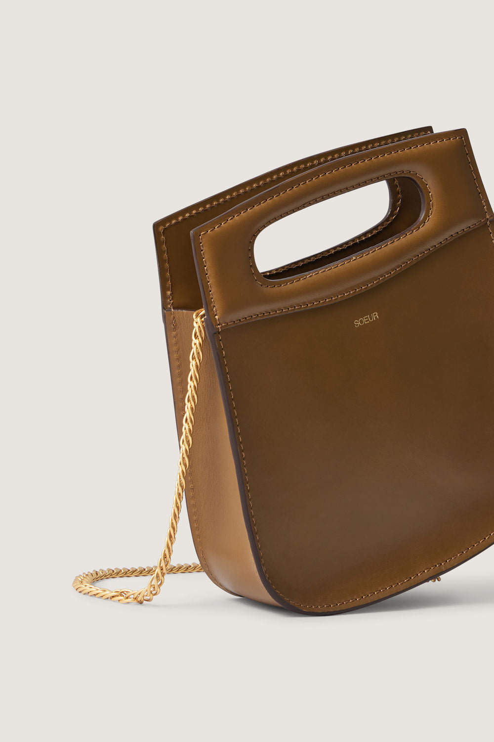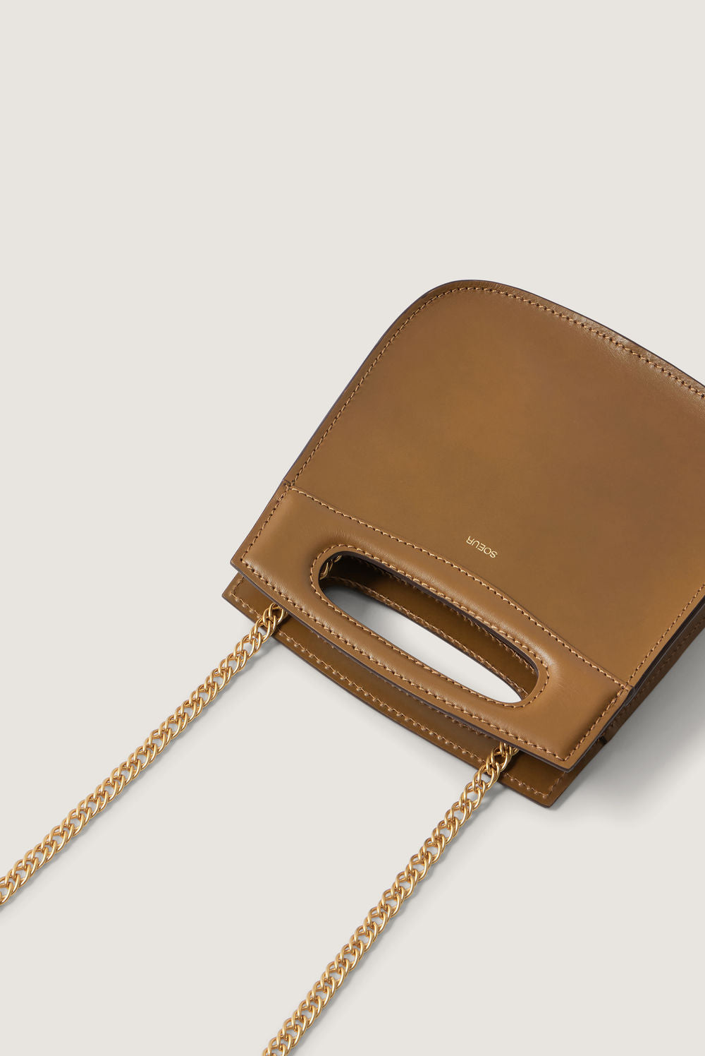 CHERI MINI es la versión en miniatura de uno de nuestros icónicos bolsos, reconocible por su asa ovalada moldeada. Puede llevarse tanto en la mano como al hombro, gracias a su delicada cadena dorada. Es el complemento perfecto para un atuendo elegante. También resulta sumamente práctico para el día a día, cuando solo necesitas llevar lo imprescindible.