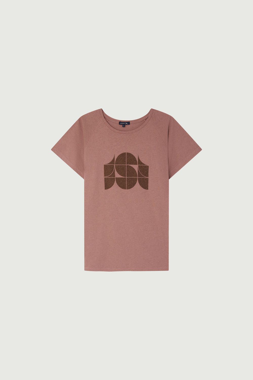 Camiseta con monograma "S" en mezcla de algodón y lino. rosa viejo